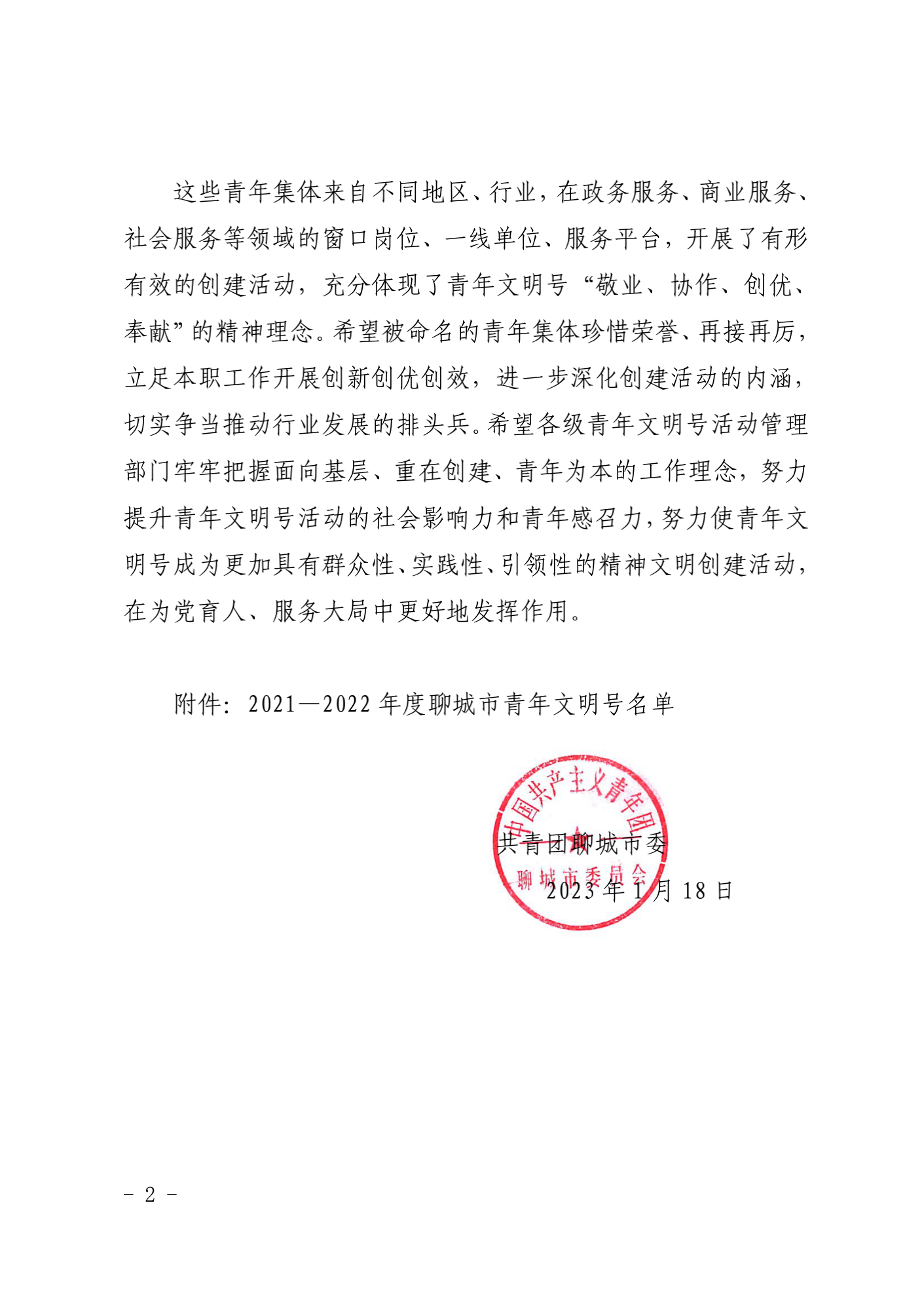 近日,共青團(tuán)市委印發(fā)《關(guān)于命名 2021—2022年度聊城市青年文明號的決定》(聊青發(fā)〔2023〕3號),聊城市財(cái)金清潔能源熱力有限公司榮獲“2022年度市級青年文明號”榮譽(yù)稱號。